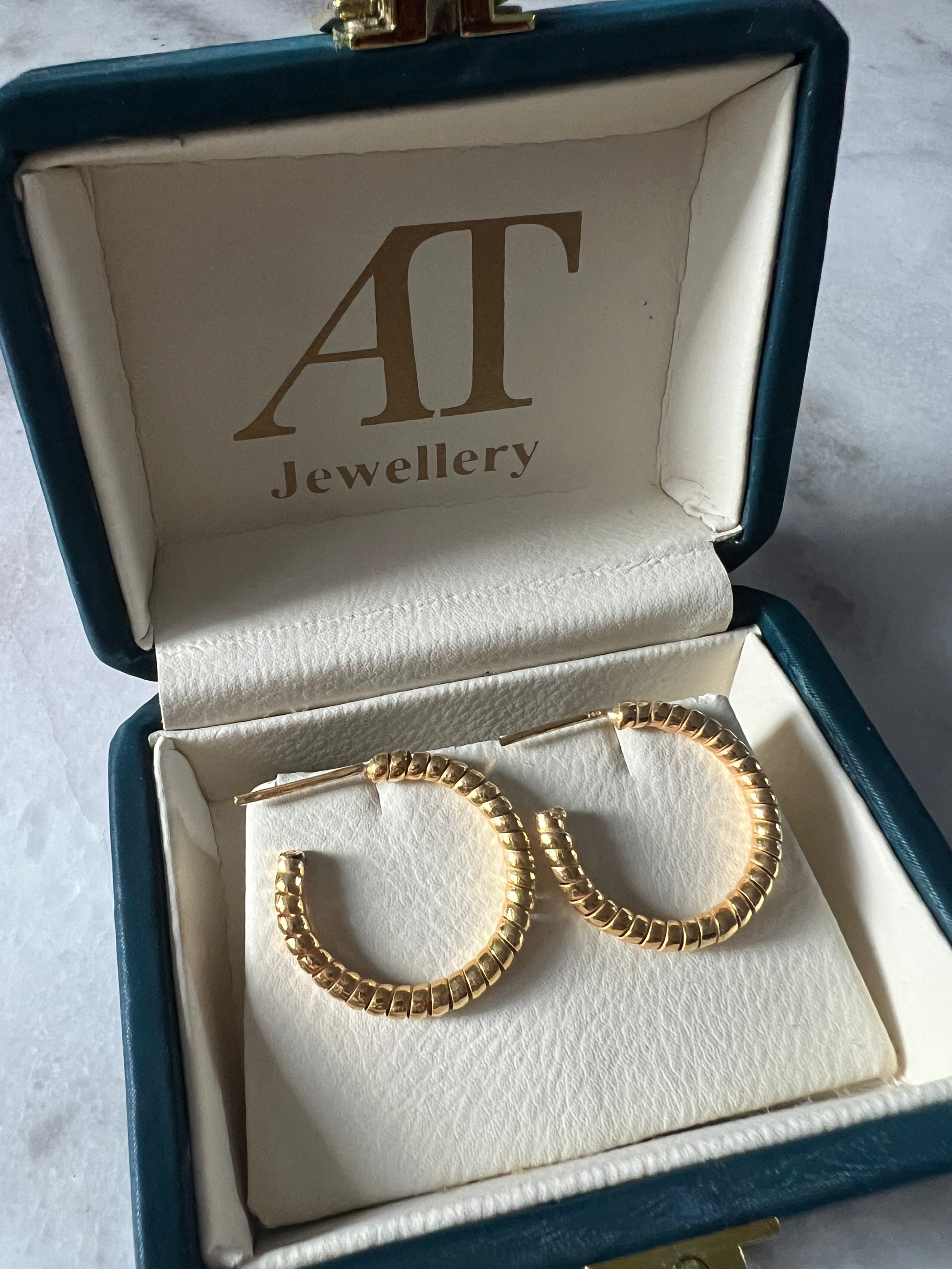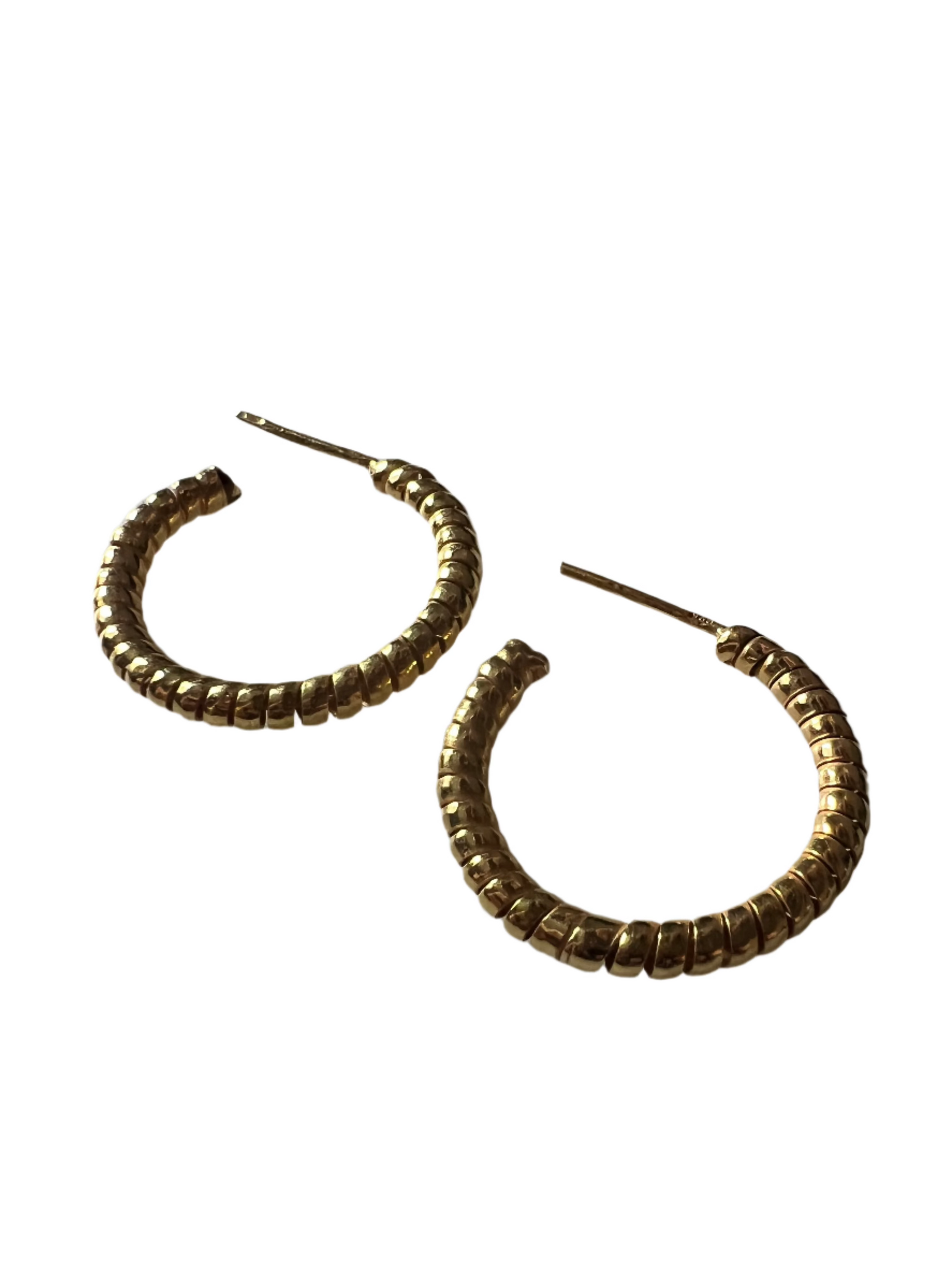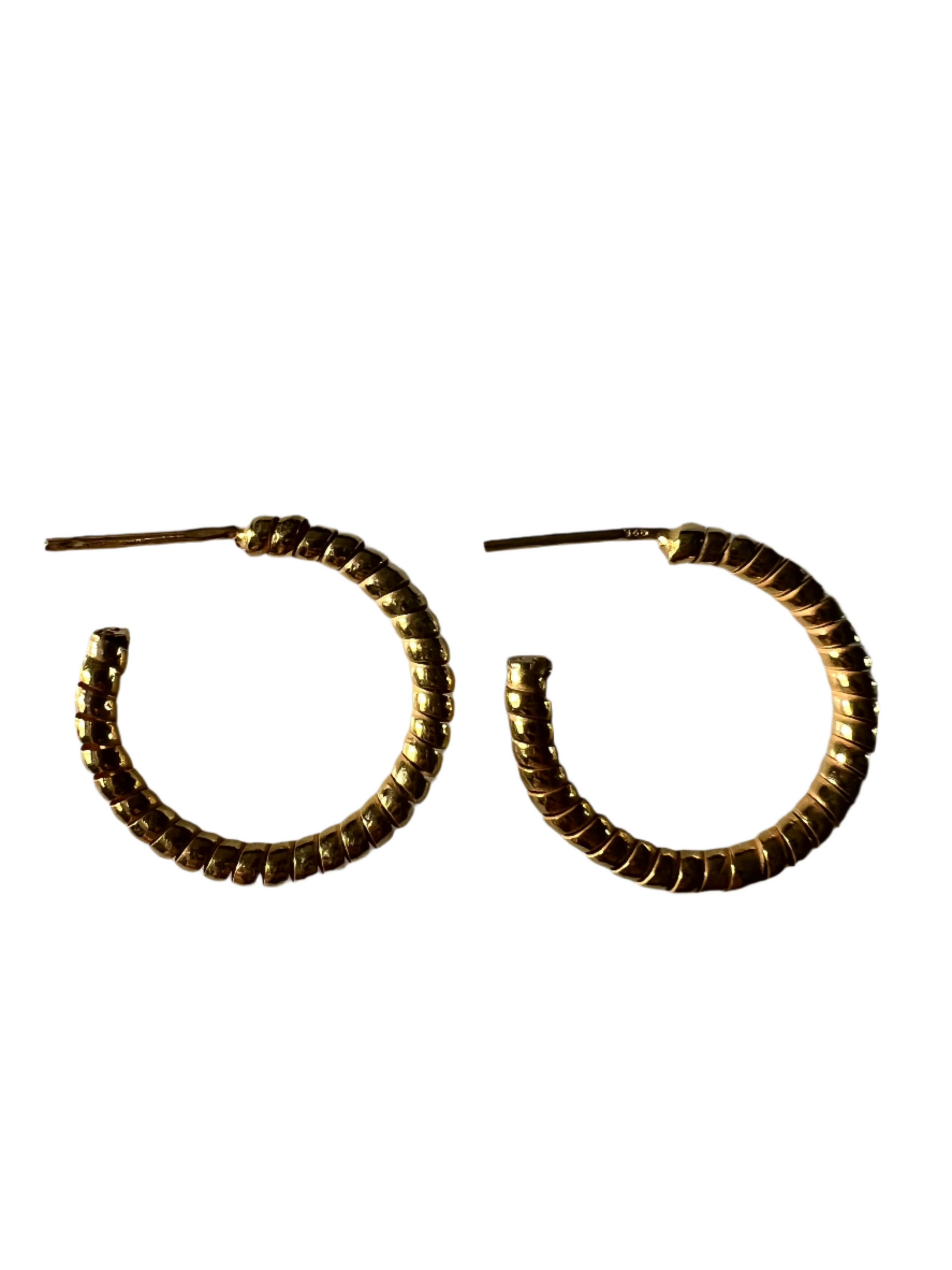 Introducing the Aria Hoops, crafted with a sleek spiral design that exudes elegance and modern flair. These hoops are designed to enhance any ensemble with their graceful silhouette and timeless appeal. Perfect for both casual and formal occasions, the Aria Hoops are a statement piece that captures the essence of effortless style.
