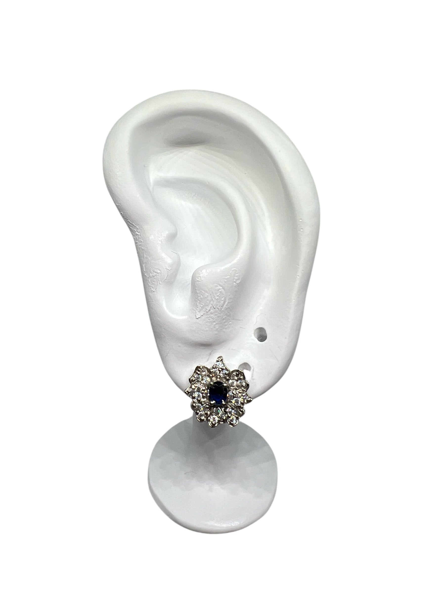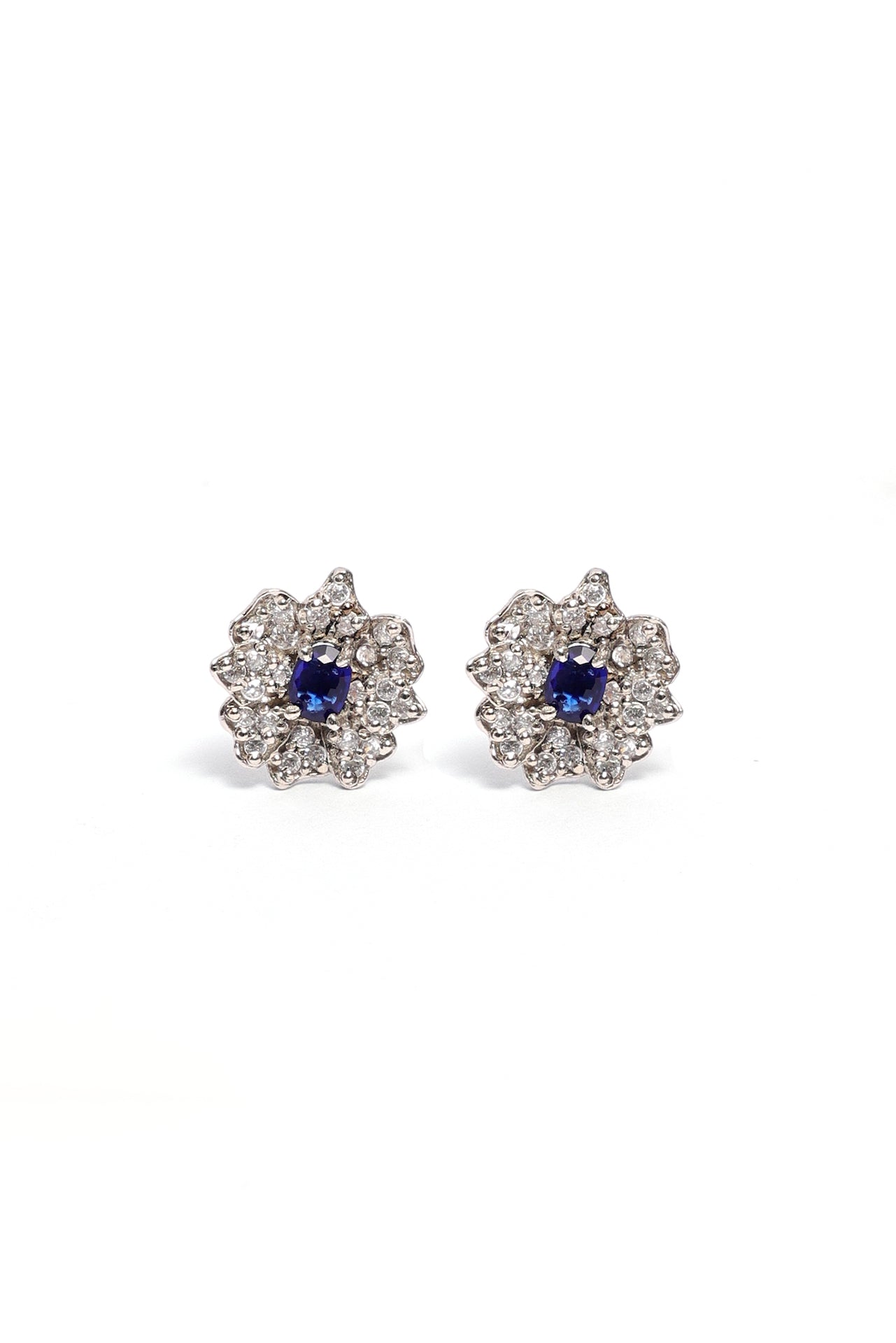 En moderne, abstrakt fortolkning af naturen med en livlig blå midtersten omgivet af fine zirkoner. En raffineret balance mellem elegance og enkelhed.