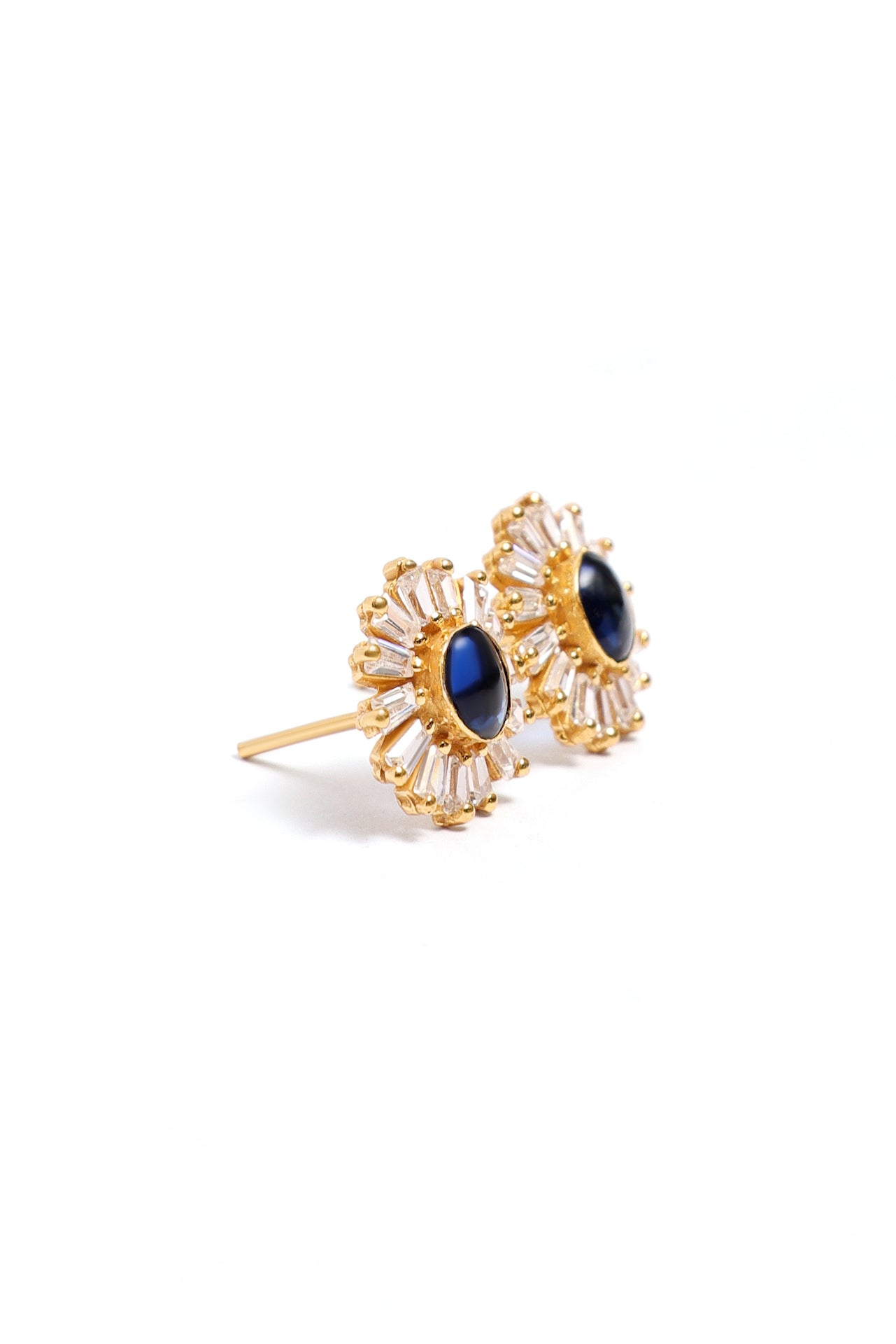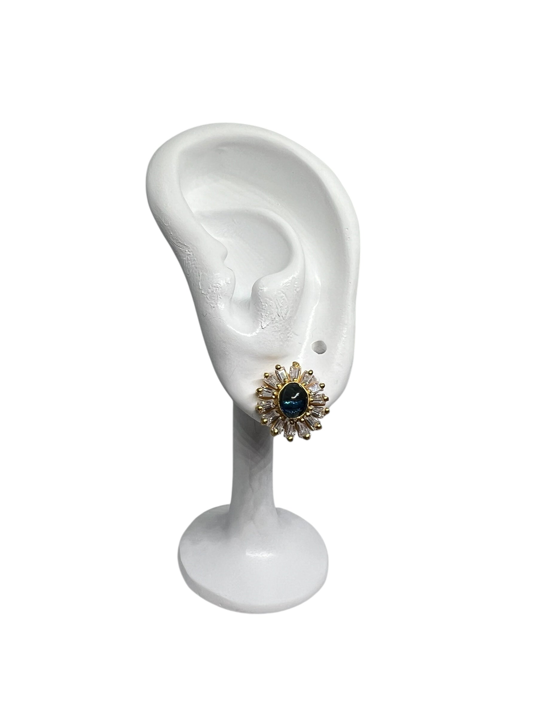 Dybblå sten i midten, omkranset af funklende zirkoner. Elegant, tidløs og ubesværet luksuriøs.