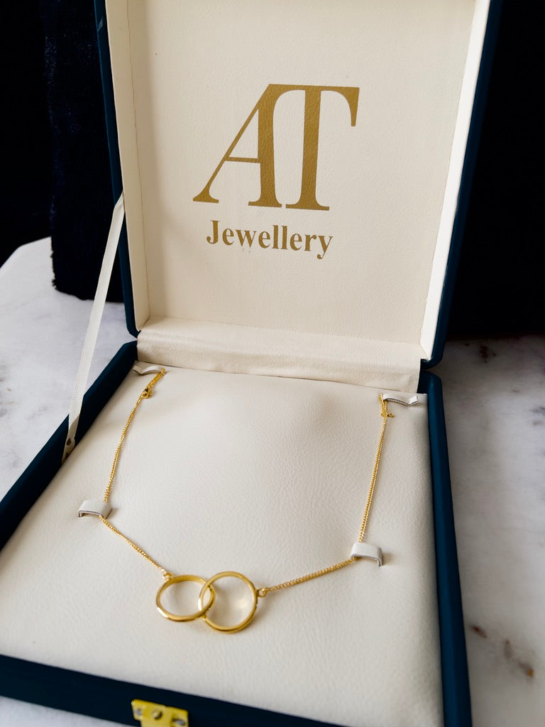 TE: The Eternal halskæde - Med tidløs enhed og vedvarende elegance symboliserer dette smykke evig kærlighed og forbindelse gennem sine sammenflettede cirkler, der udstråler ynde og sofistikering.
