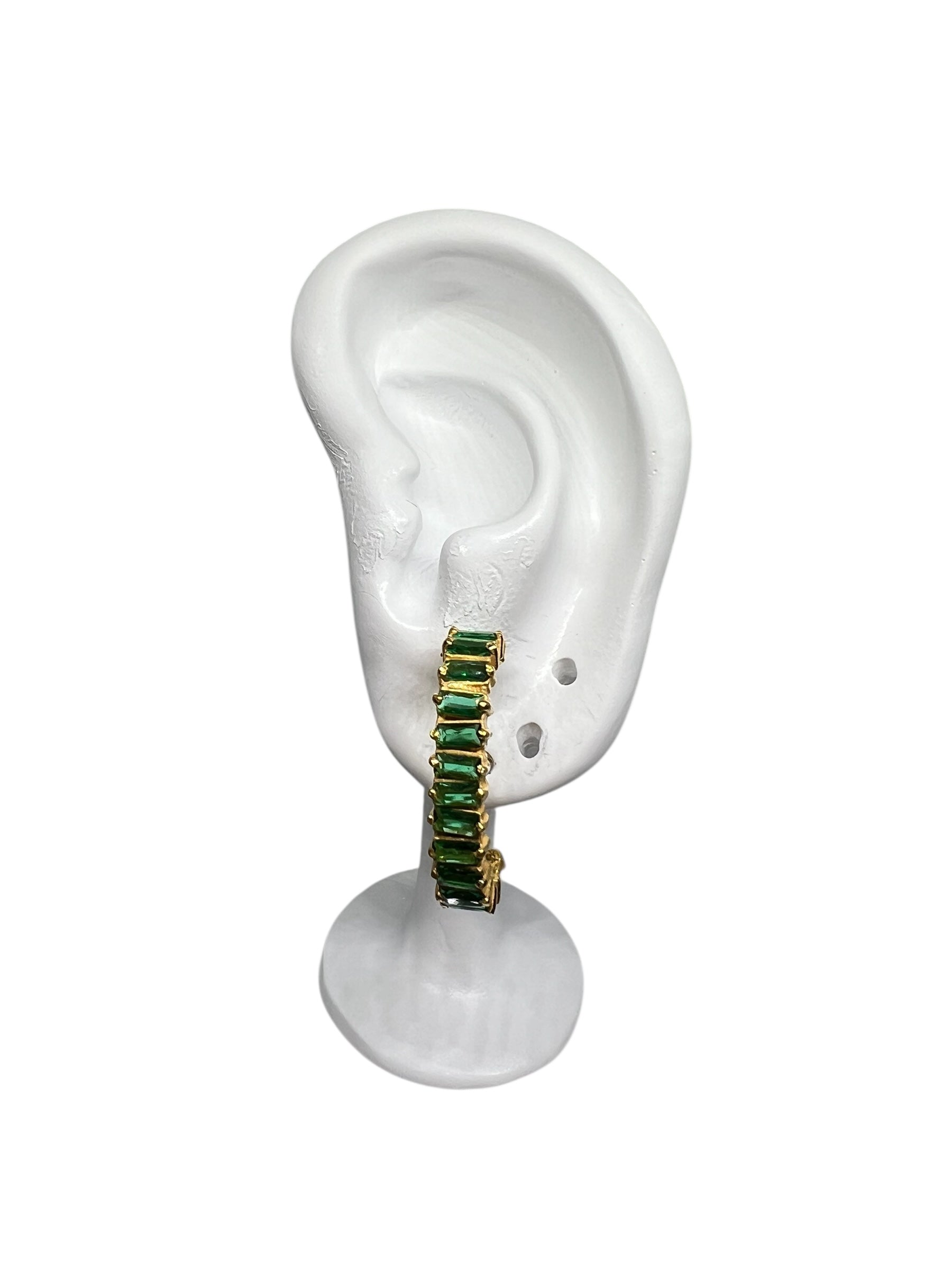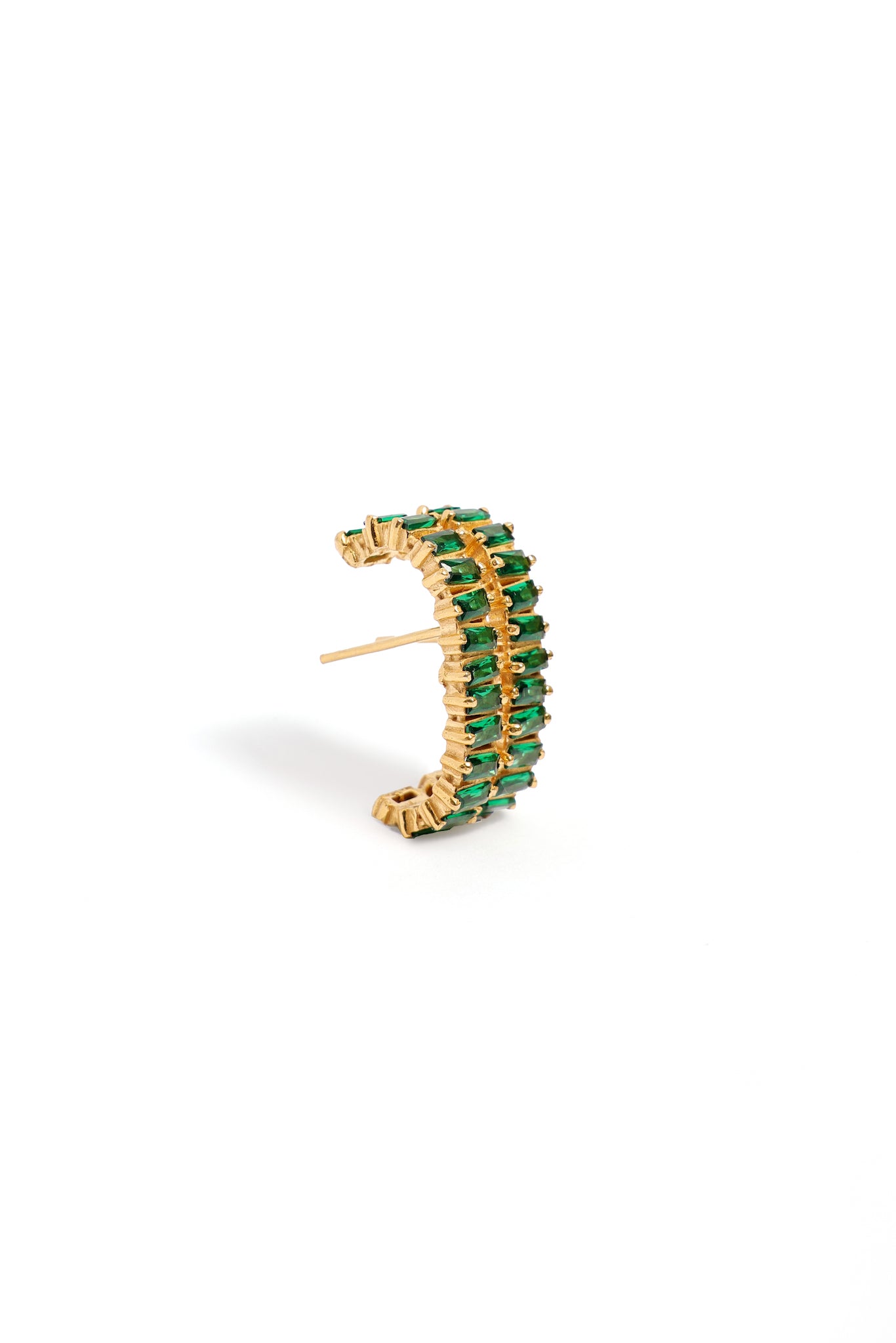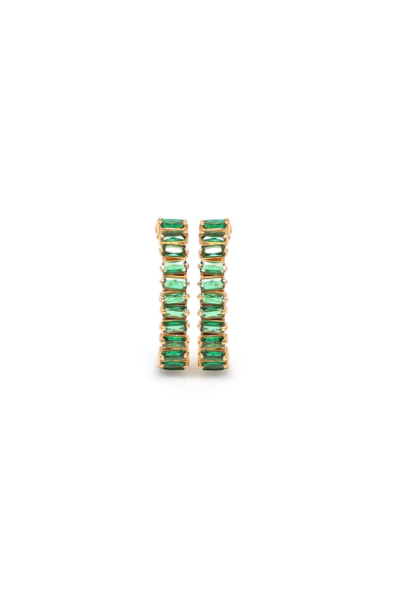 Elegante ørestikker med blødt buede kanter og livlige grønne pavésten – raffinerede, moderne og ubesværet iøjnefaldende.