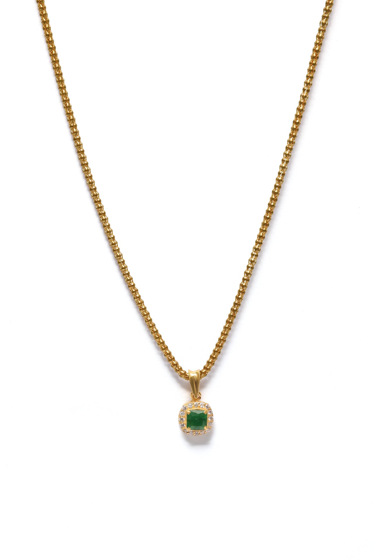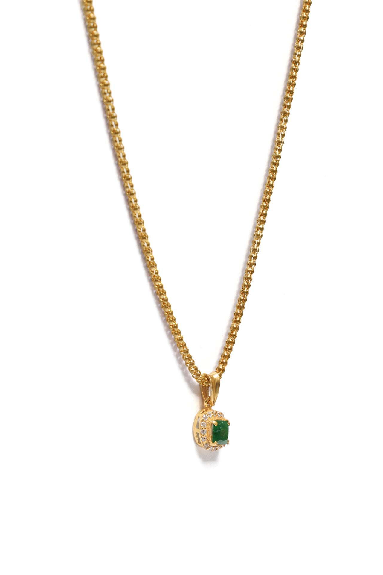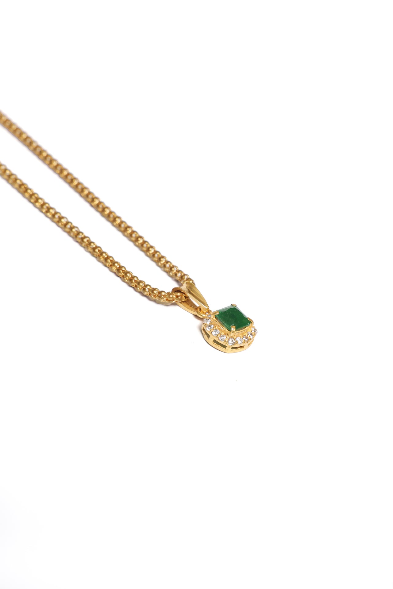 Verde-vedhænget er yndefuldt og iøjnefaldende og har en rig grøn sten indrammet af strålende zirkoner, der bringer et sofistikeret farvestrejf til ethvert outfit.