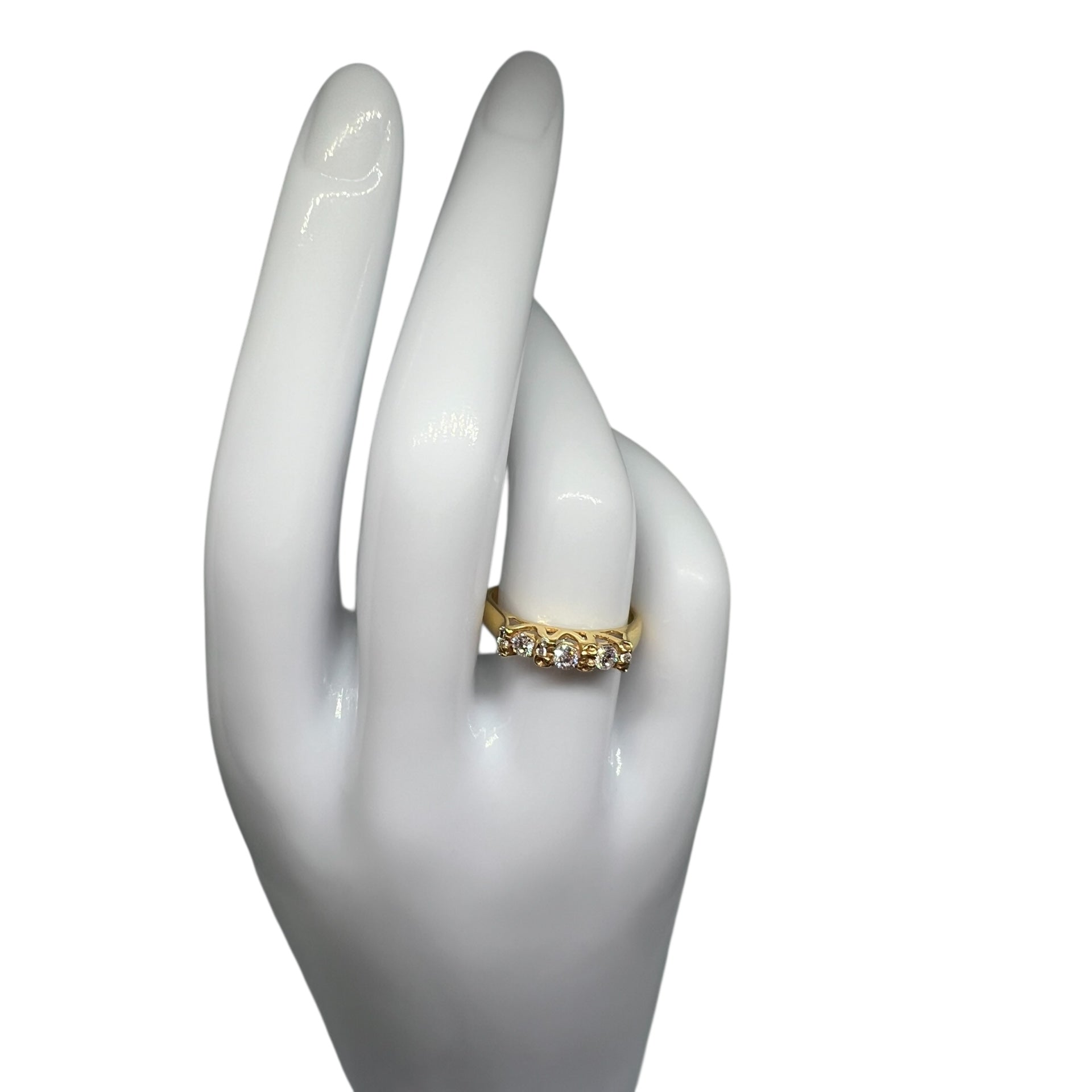 Denne elegante og raffinerede ring har tre glitrende zirkoner, der er sat mellem fine zirkonbelagte vægge for en moderne og elegant finish.